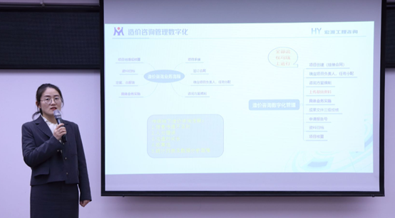 在案例演练环节,业务部主任李芮以典型项目为蓝本,动态演示了全流程数字化操作实践,生动展现技术赋能下的效率提升与管理优化。最后的互动交流中,董事长许健就数字化转型的核心价值与实施难点同与会代表深入探讨,在问答碰撞中激发思考、共享经验。
